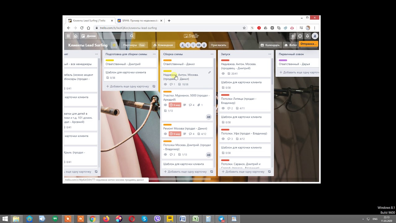 1.1. Проходишь в трелло в доску Клиенты Lead Surfing